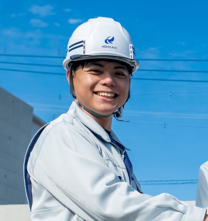 モノづくりに携わる仕事がしたいという思いから建設業界を志望しました。学生時代は経営学やマーケティングを学んでおり、建設とは無縁の分野でしたが、こうかき建設は学歴不問で意欲を重視してくれたため、自分にも挑戦できると感じて入社を決めました。未経験でもしっかり育ててくれる環境が整っています。