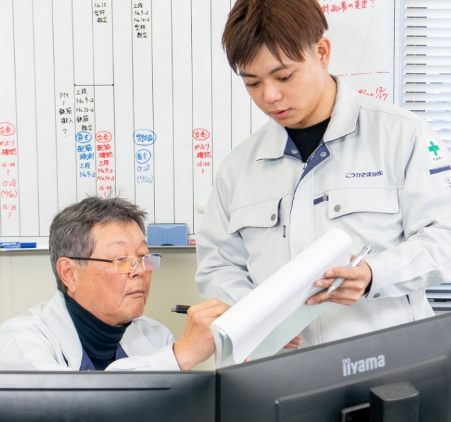 こうかき建設では、経験の有無にかかわらず、やる気次第で多くのことに挑戦できます。自分の手で何かを形にしたい方、人とのつながりを大切にしたい方にとって、やりがいのある職場です。ぜひ一緒に現場をつくり上げていきましょう。